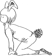 De staart is een wollen pompoen. Het mutsje is een bivakmuts. Ook kan een afgeknipte mouw van een oude trui gebruikt worden, naai hiervan de bovenkant dicht. Deze muts kan onder de kin vastgestrikt worden (zie tekening A).