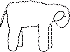 Breisteek: recht. Brei het schapenlichaam volgens het patroon hiernaast. Naai eerst de vier pootjes dicht, daarna de buiknaad.